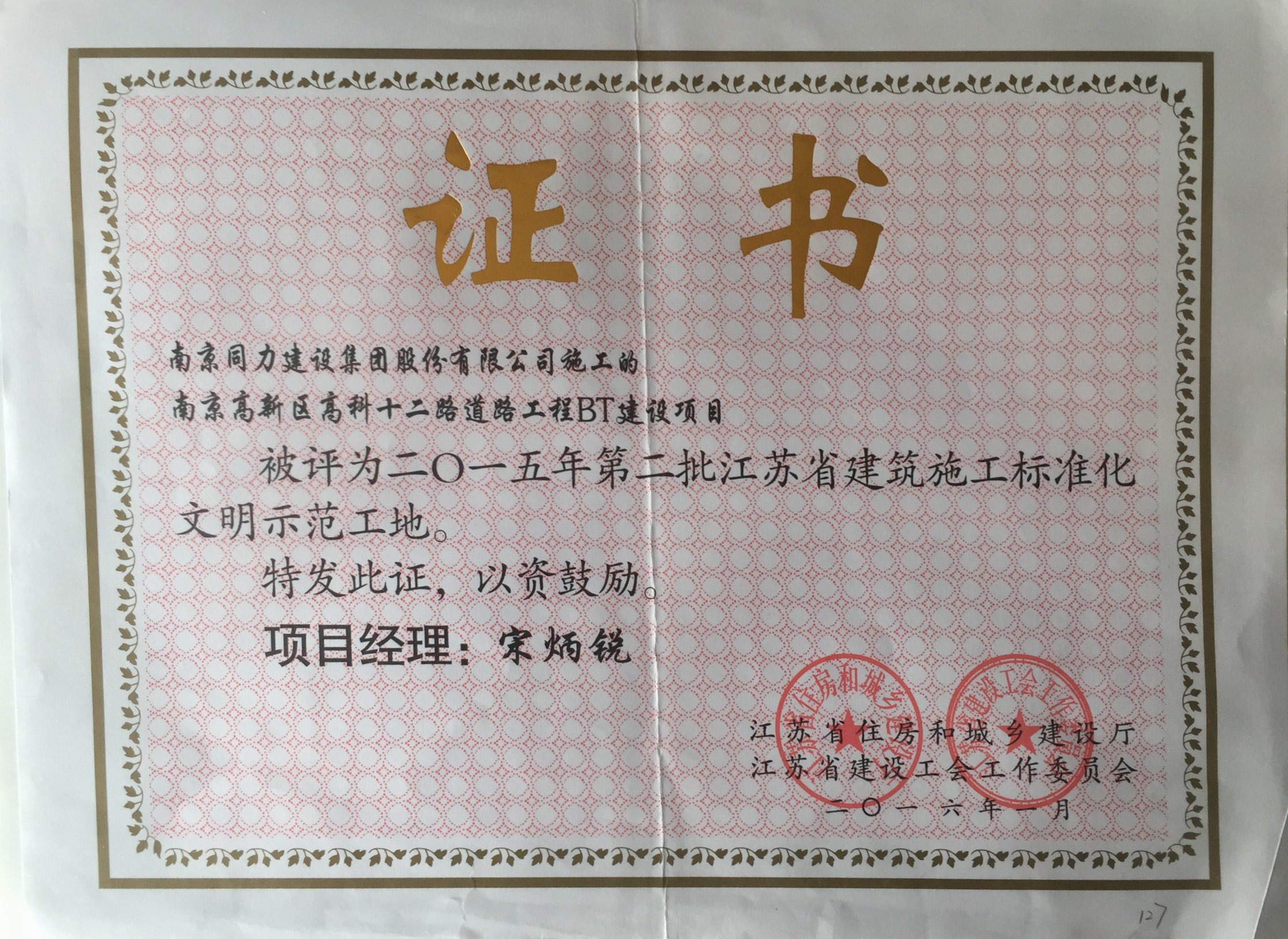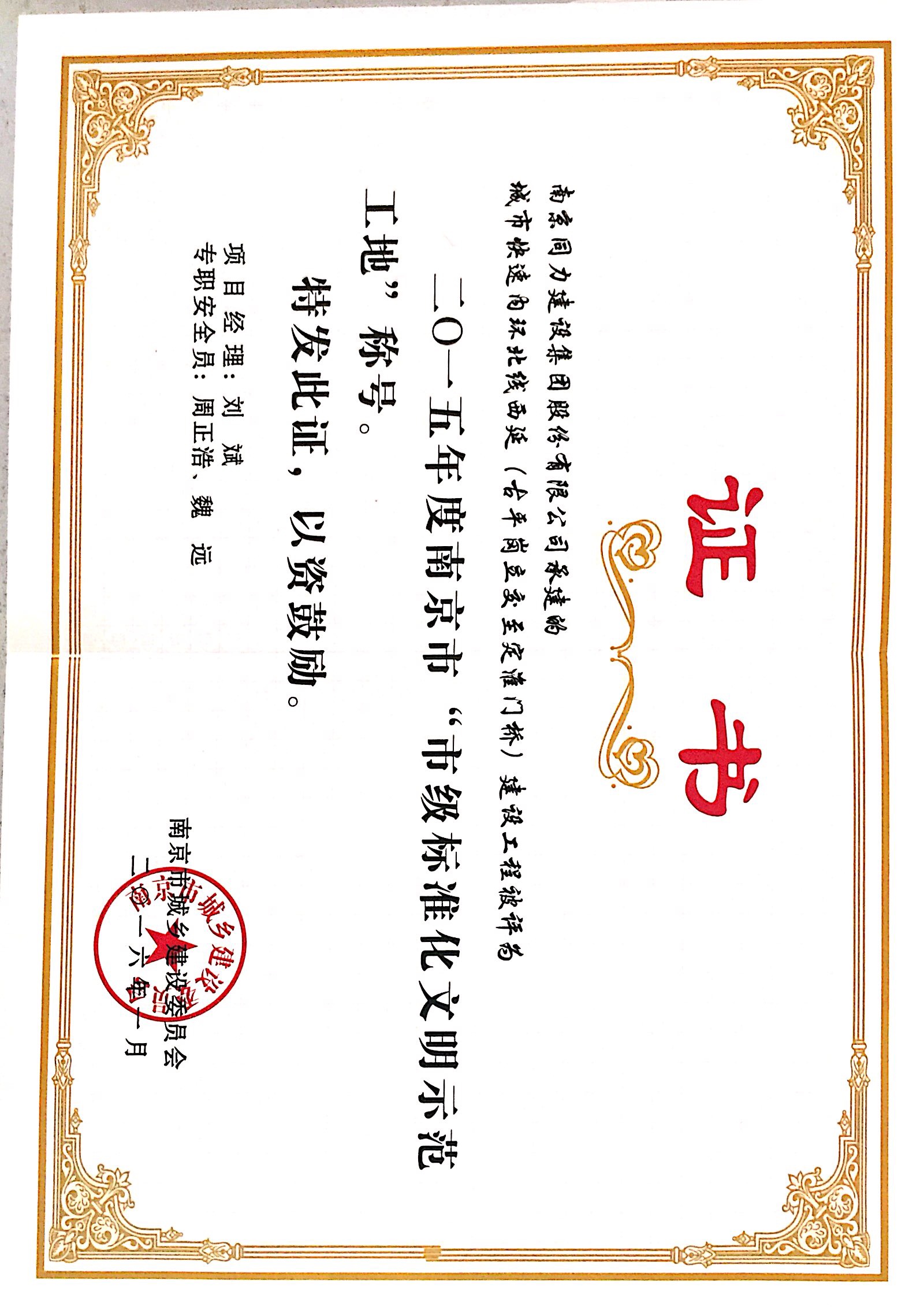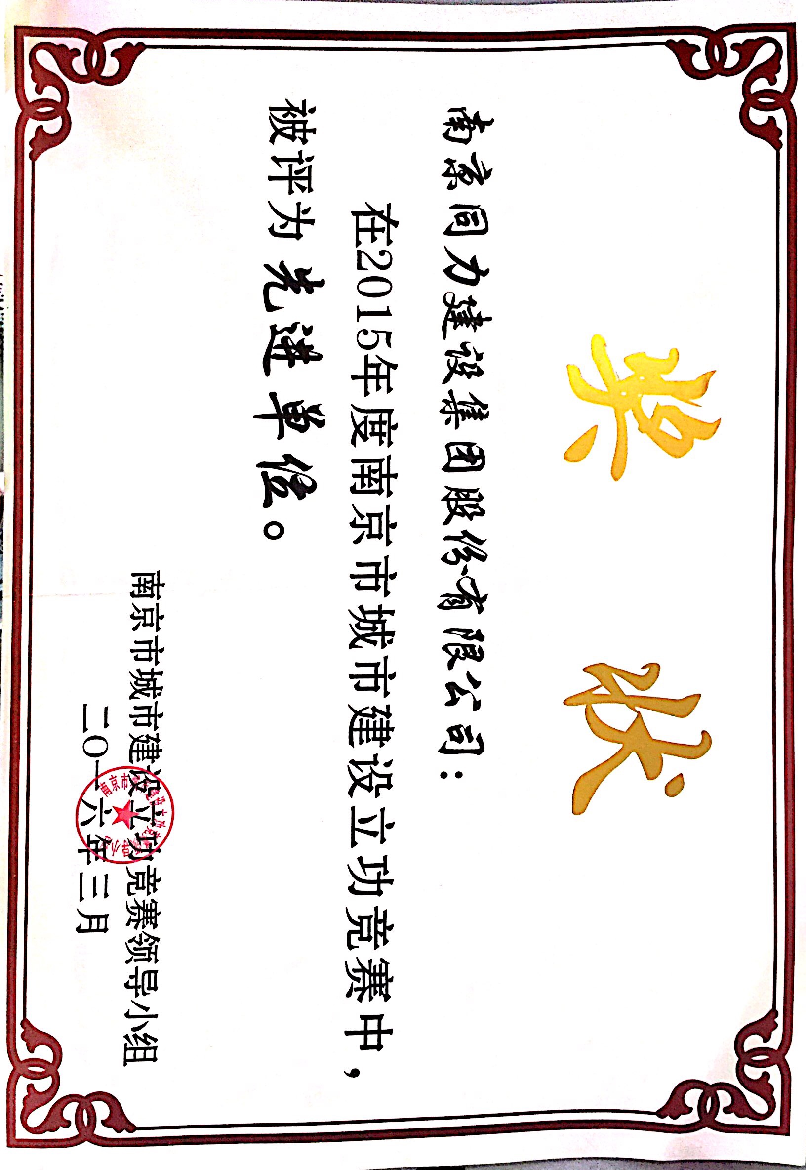 公司被評(píng)為“2015年度南京市城市建設(shè)立...