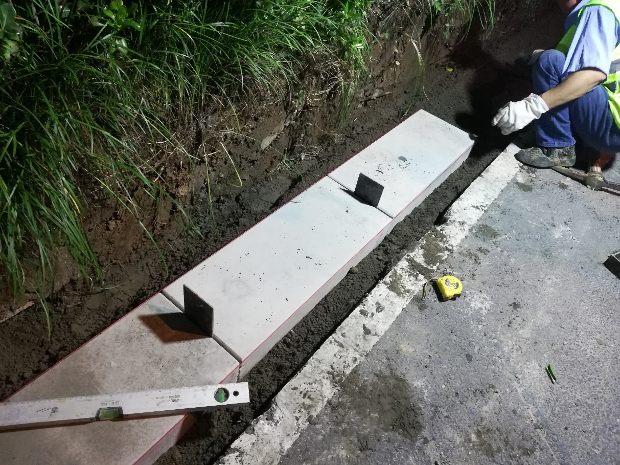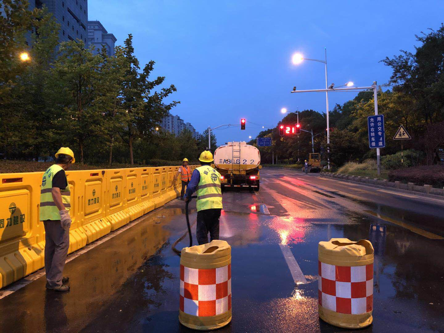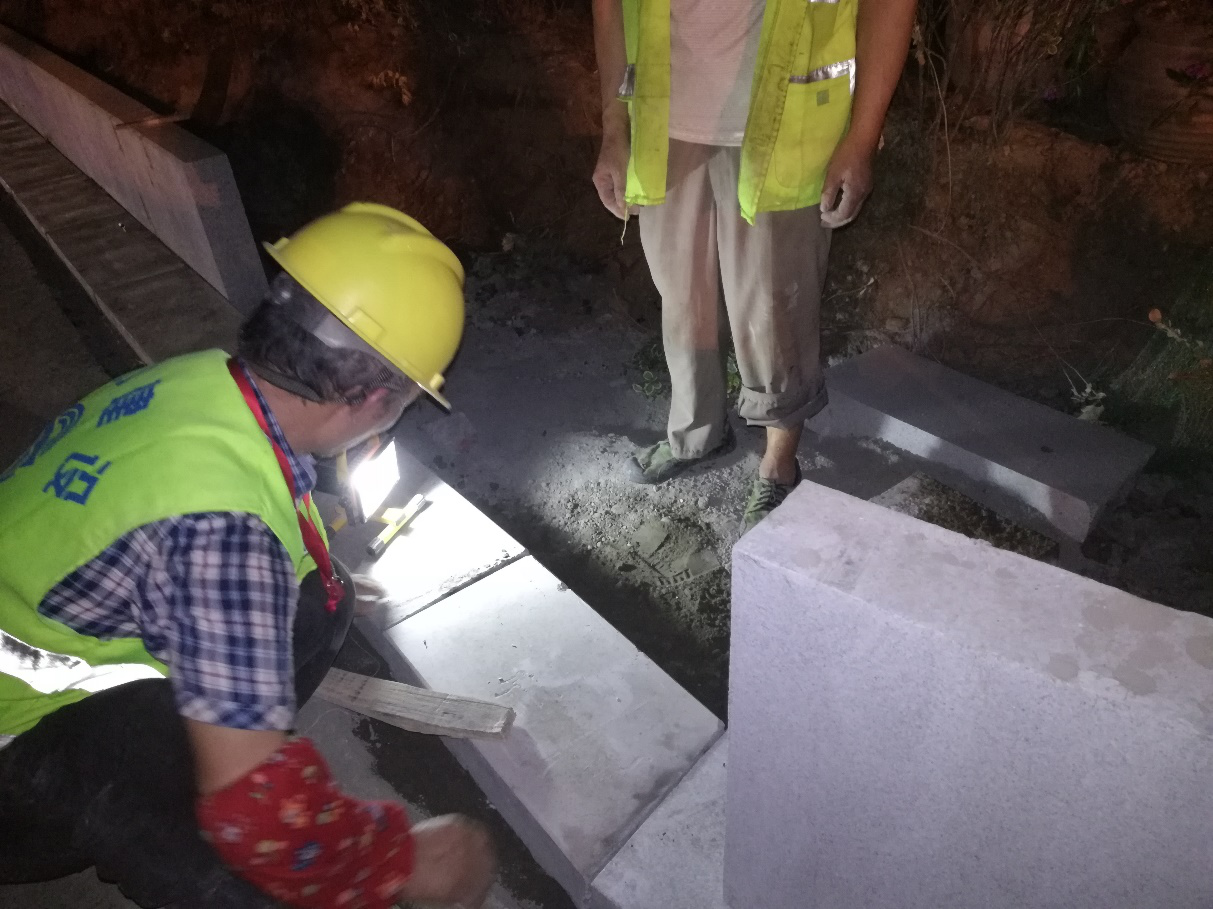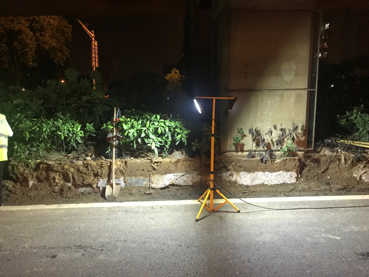 開工后外部條件復(fù)雜,名城會、中高考護(hù)考、梅雨等都大大影響了工期。開保工至今幾乎有2\3的時間無法正常施工。針對護(hù)考、重要活動保供節(jié)點等特殊時段,正一方面多方協(xié)調(diào),盡可能爭取相對寬松的外部條件;一方面果斷調(diào)整工序,在禁運(yùn)禁噪前夕組織加大力量集中實施產(chǎn)生道大量渣土和噪音的側(cè)平石拆除作業(yè),并用圍擋密圍占住原側(cè)平石區(qū)域防止土方流失。確保了在護(hù)考時期可以只施工路緣石鋪貼等不產(chǎn)生噪音的工序。同時為了切實在護(hù)考期間將噪音降至最低,經(jīng)過調(diào)研,項目部給各作業(yè)班組更換采用太陽能充電鋰電池LED燈等新型照明設(shè)備。這類新設(shè)備價格不貴,又不用燃油發(fā)動機(jī)提供電能,不僅解決了燃油發(fā)動機(jī)的噪音問題,同時移動便利也方便了施工。